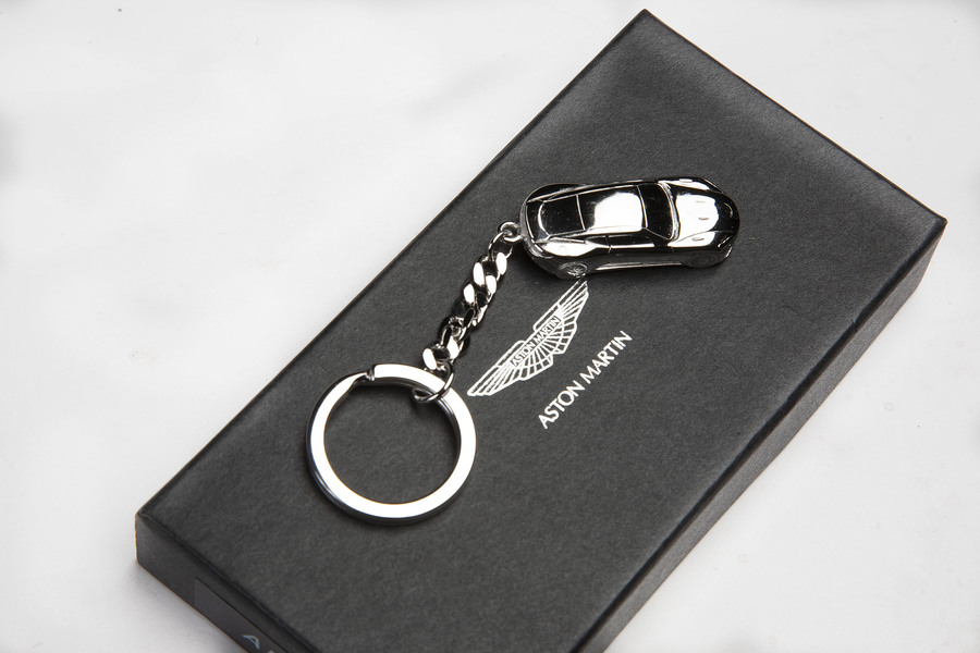 Stunning Aston Martin hallmarked sterling silver keyring featuring a fantastic miniature DB11.